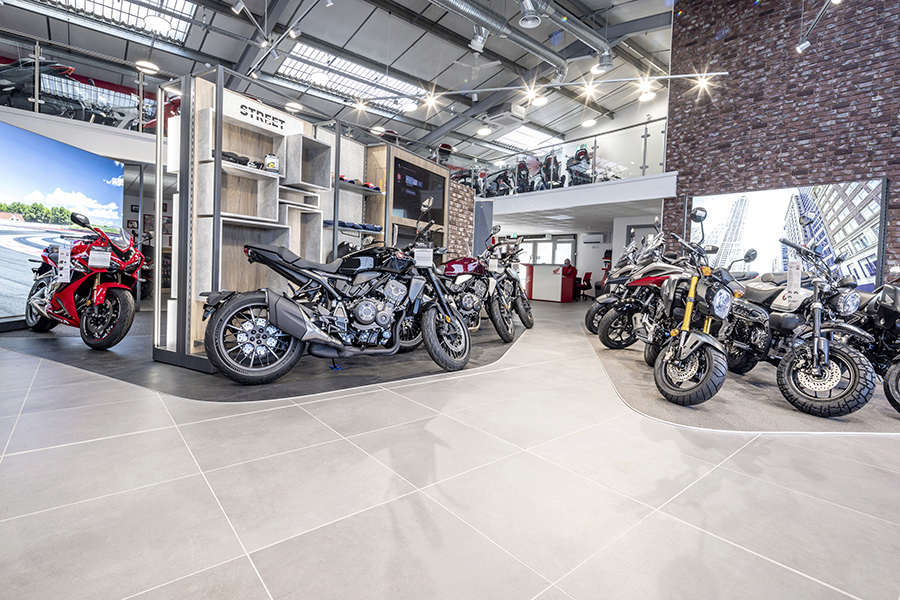 Ez a szemlélet túlmutat a klasszikus showroom funkción. A cél egy olyan környezet kialakítása, ahol a motorozás életérzésként jelenik meg, és ahol a látogatók inspirációt kapnak, nem csak információt.